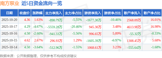 10月20日的资金流向数据方面,主力资金净流出890.79万元,占总成交额5.55%,游资资金净流出1677.3万元,占总成交额10.46%,散户资金净流入2568.09万元,占总成交额16.01%。