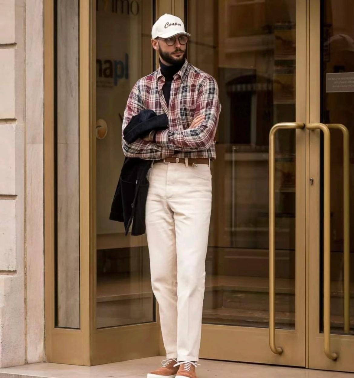 我认为大多数男人都对白裤子有疑问。较浅的颜色不仅容易脏、难清洗,而且还会大大暴露身材的缺点,让搭配变得更加困难。