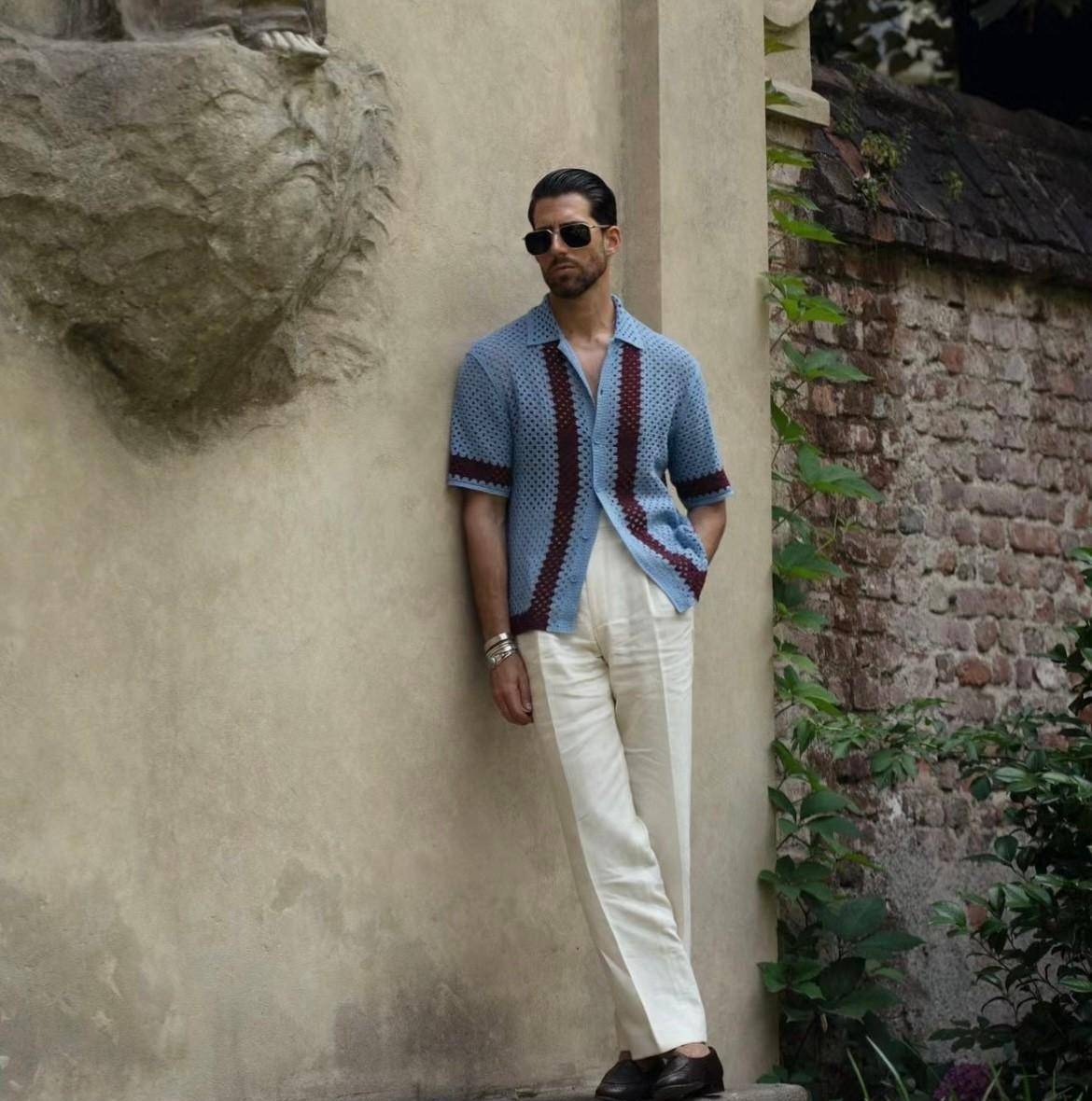 如果裤子合身,可能会更有气质、更有颜值。就像意大利风格的浪漫男人一样,服装的优雅从来不是配饰的问题,而是漫无目的的衣服展示。这样,“白裤”的感觉就与皮鞋自然地碰撞在一起,衬托出你的优雅气质。
