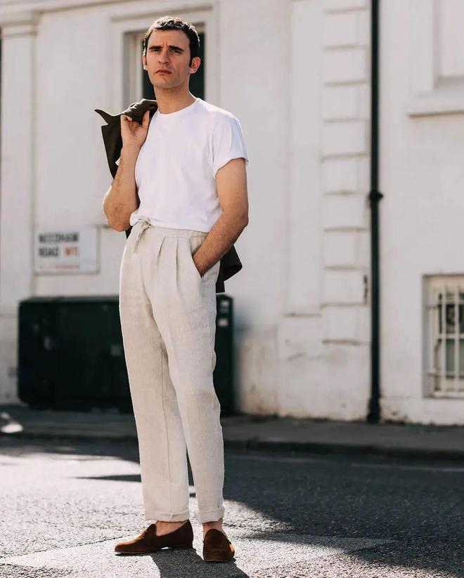 大部分男士在穿搭的时候,很少会选择白色裤子。的确,相比较于其他颜色,白色裤子的难度系数较高,但是也并不代表它就不好看。