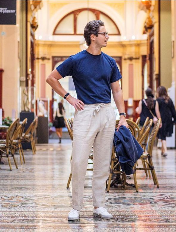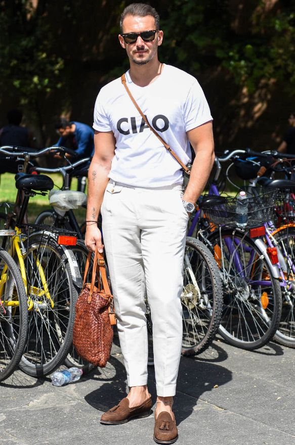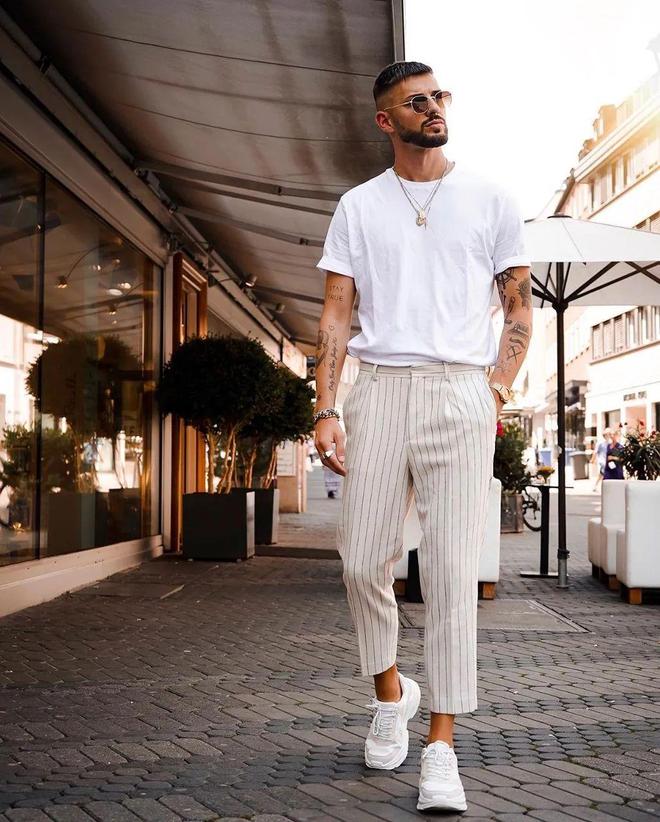 夏季里最需要的无非就是清凉和简洁。繁琐的穿搭不仅不能提升时尚感,还可能会对造型造成负担。白色裤子在搭配的时候本身就不具备优势,因此要时刻注意好小细节,避免搭配上的出错,这一点对于身材不突出的男士来说极其重要。