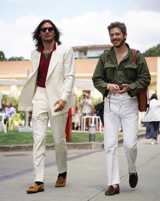 当然,除了在单品的色差上做功夫之外,还能通过一些外在元素,例如有特色的配饰。男士出街同样离不开包包和鞋款,懂穿的男士还可以增加墨镜和首饰,这样整体的穿搭会更加的丰富,还能让白色套装稳定又友好。
