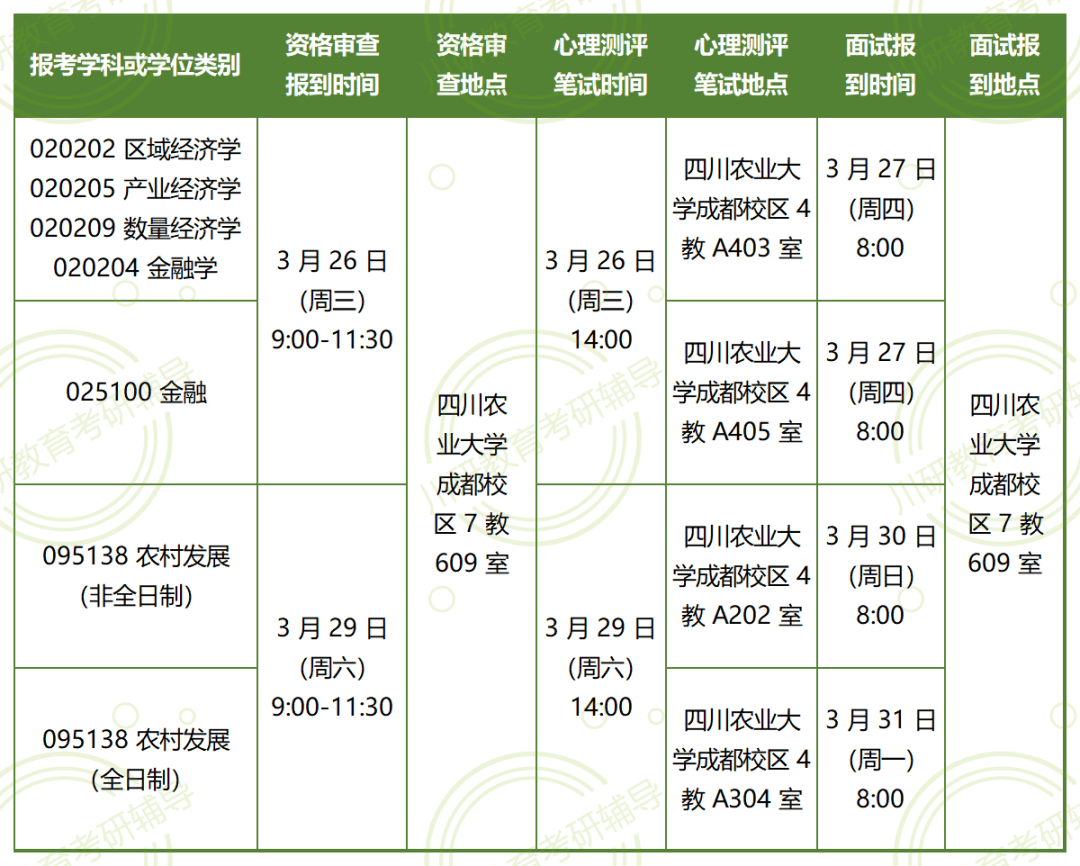 以同等学力参加复试的考生,须于3月29日(周六)上午8:00 在四川农业大学成都校区7教609室参加加试。加试采用闭卷考试 方式进行,每门满分为100分、时间120分钟。